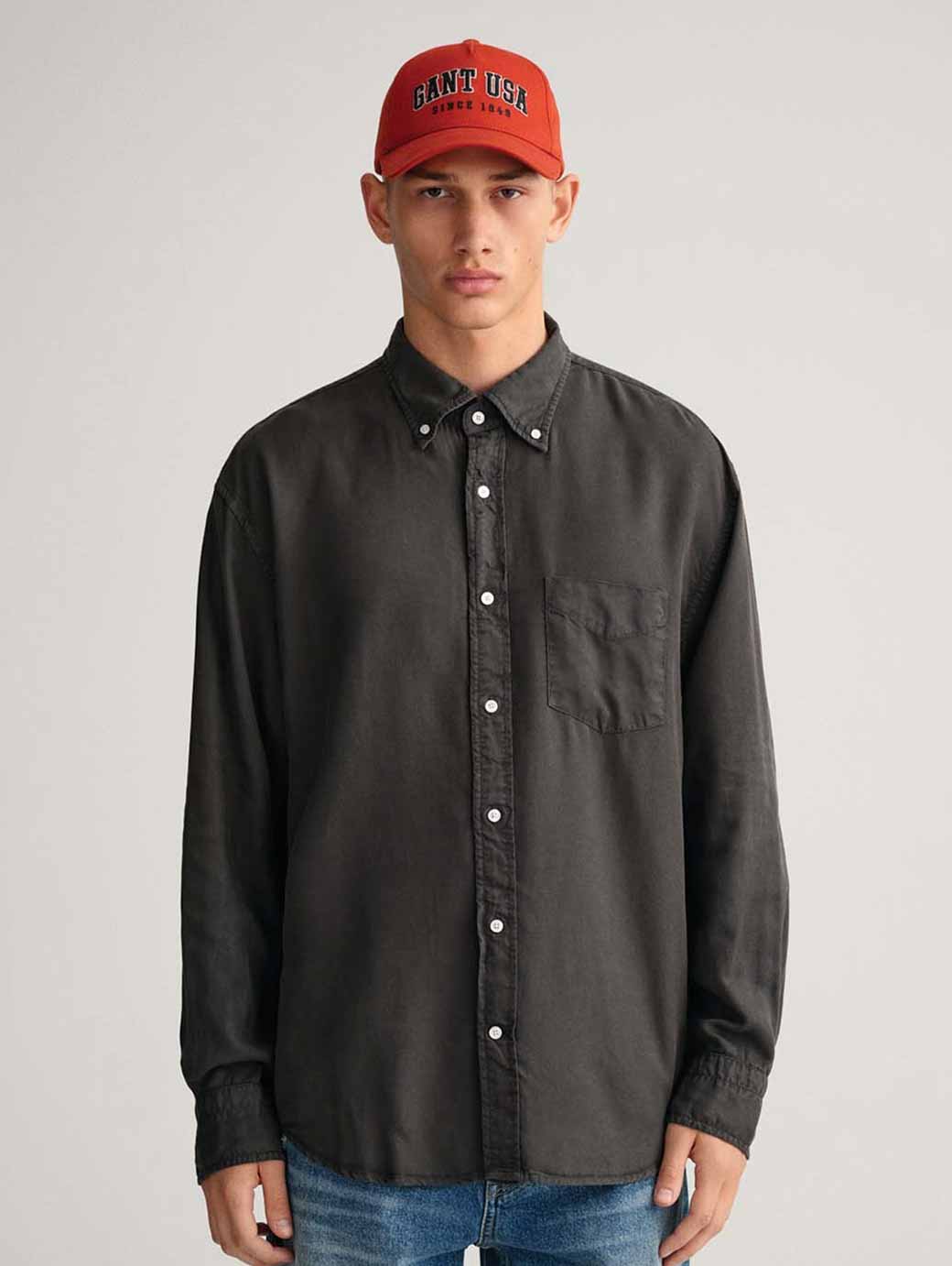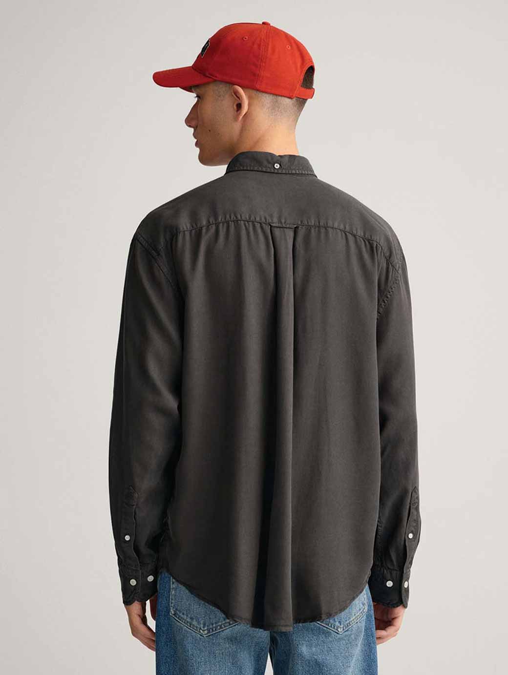 Black solid Casual shirt ,has a button-down collar, button placket, na pocket, long regular sleeves, curved hem