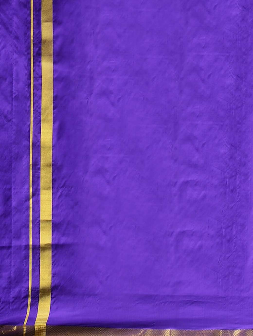 Blue solid mid-rise dhoti, has gold-coloured border Features: Silk Mark Certified Product