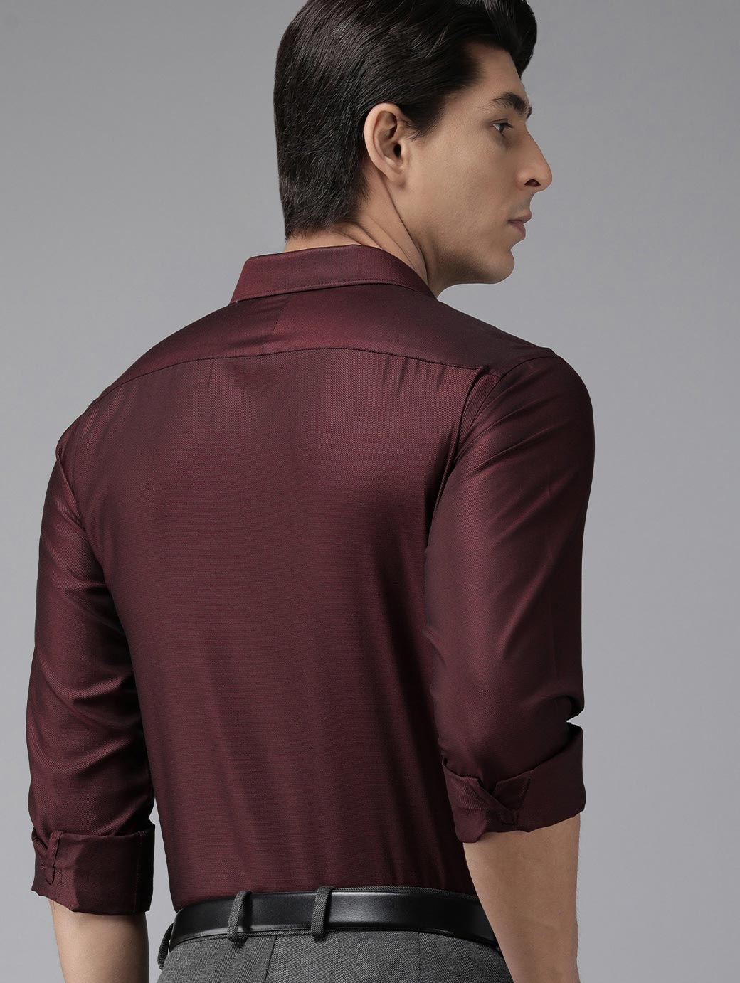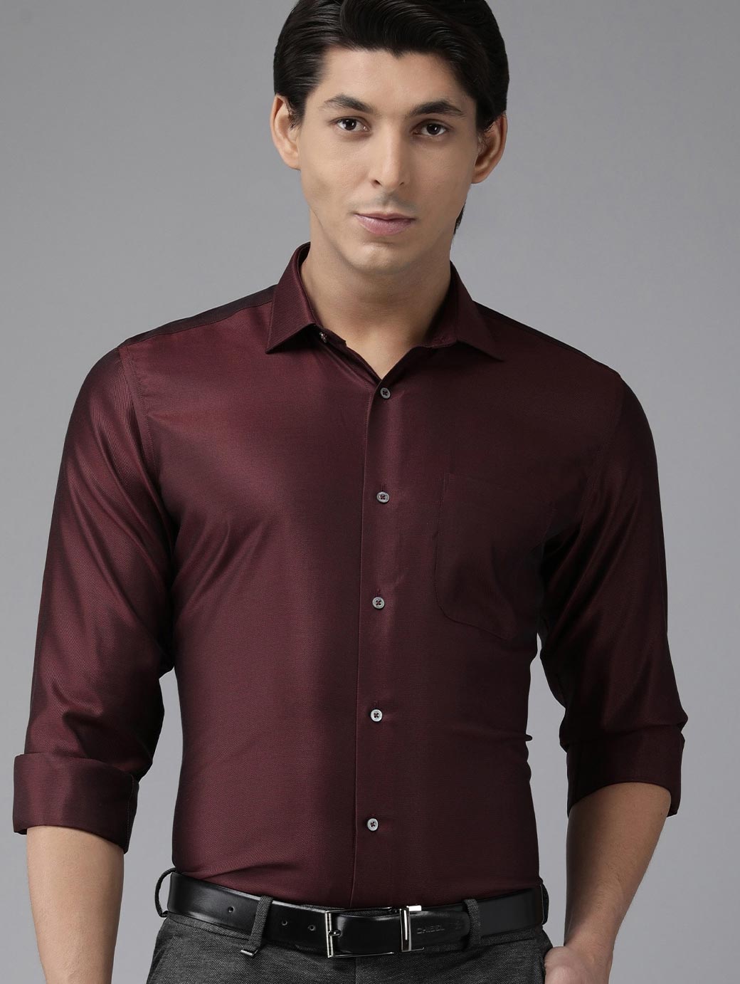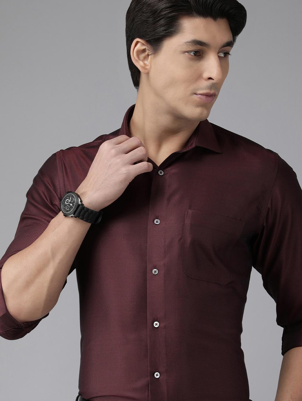 Self design formal shirt ,has a spread collar, button placket, 1 patch pocket, long roll-up sleeves, curved hem