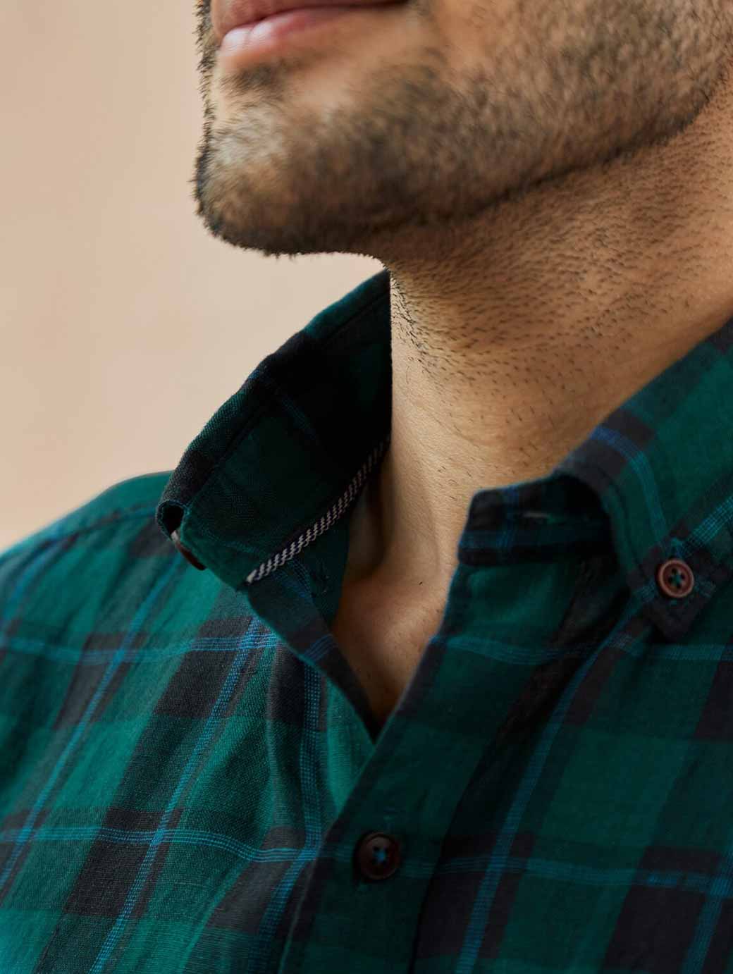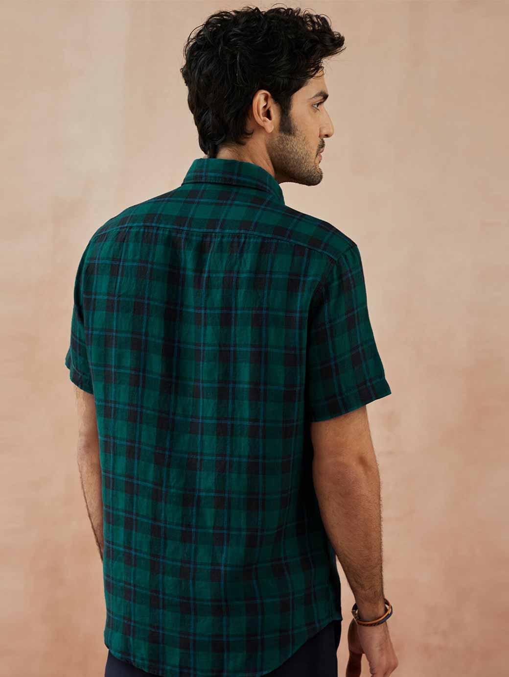 Green tartan checks checked opaque Casual shirt ,has a spread collar, button placket, na pocket, Half regular sleeves, curved hem