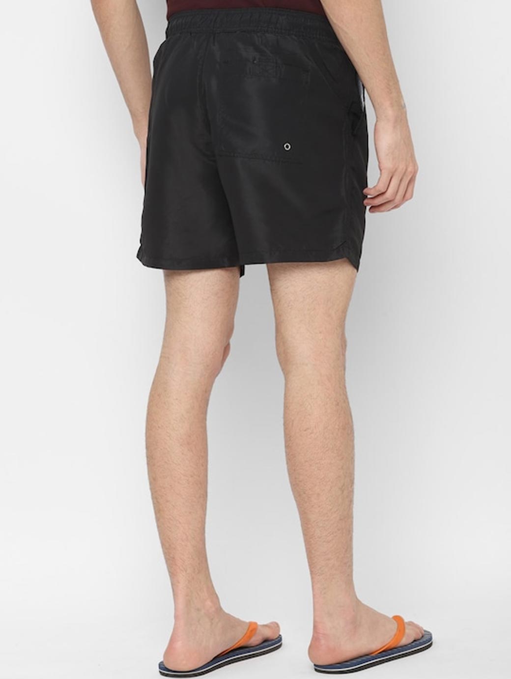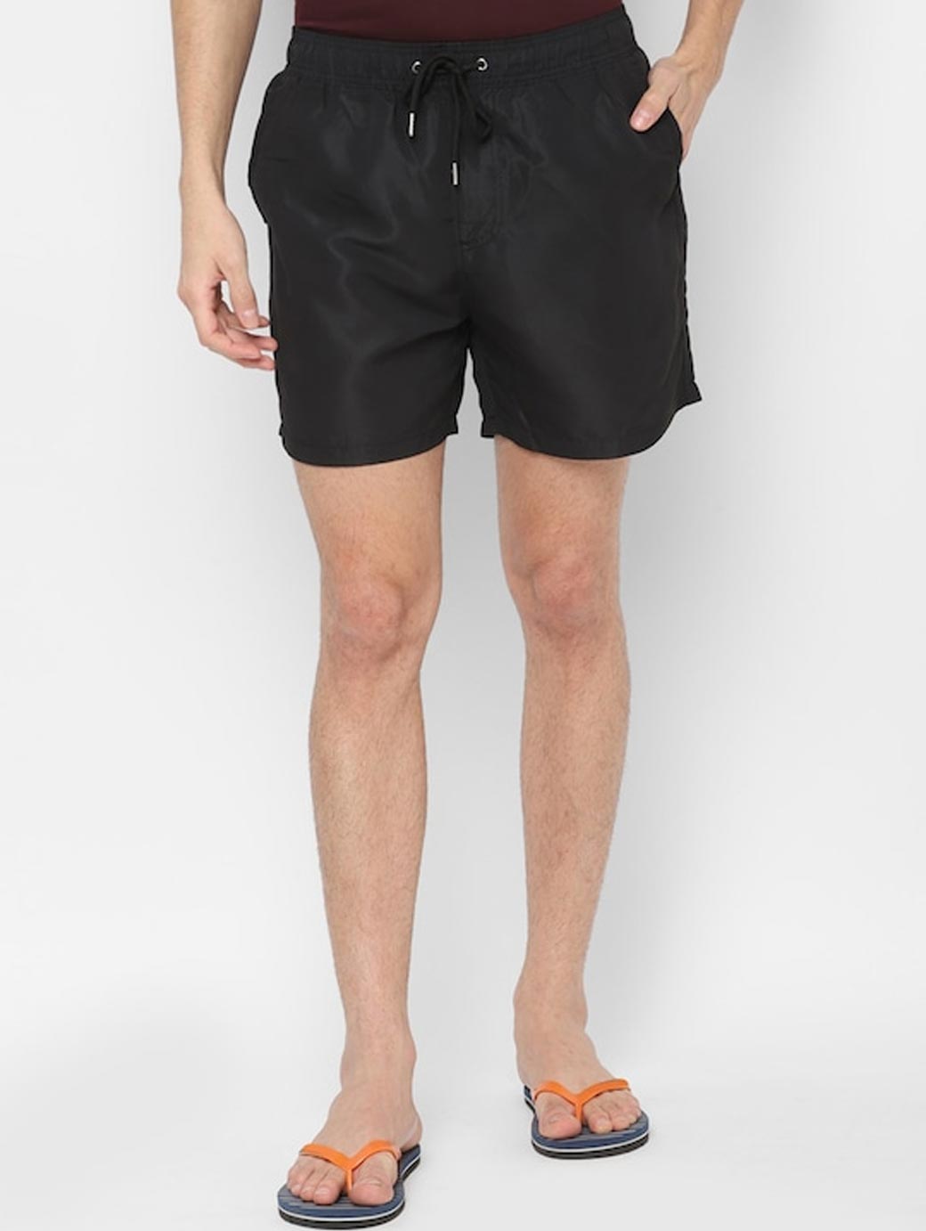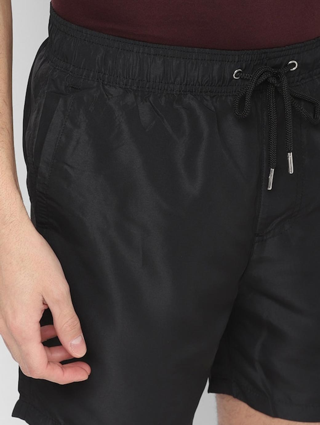 Solid swim shorts, has an elasticated waistband with drawstring closure and 2 pockets