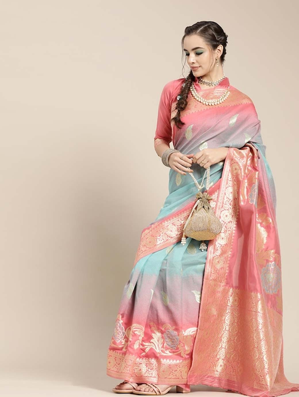 Designed with a floral print, woven border, and a silk blend fabric, this piece is sure to add to your appeal. Design Details