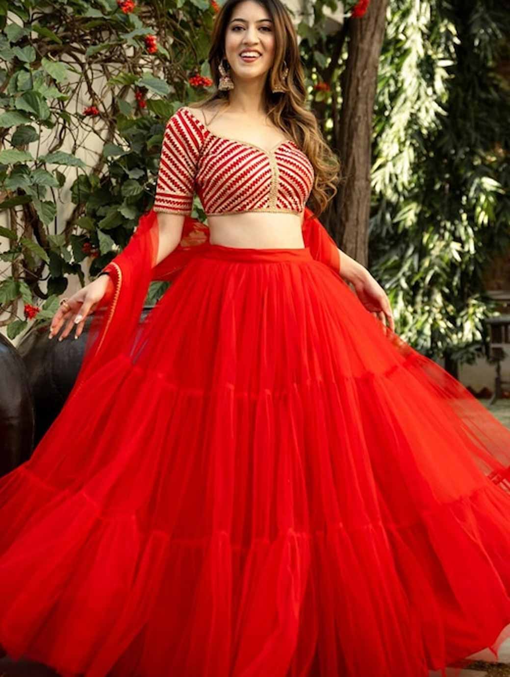Beige and pink printed ready to wear lehenga, has slip-on closure, flared hem