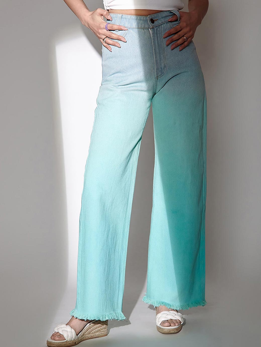 Light shade, light fade blue jeans Flared, high-rise Brand Fit: classic Clean look Non stretchable 5 pocket Length: cropped