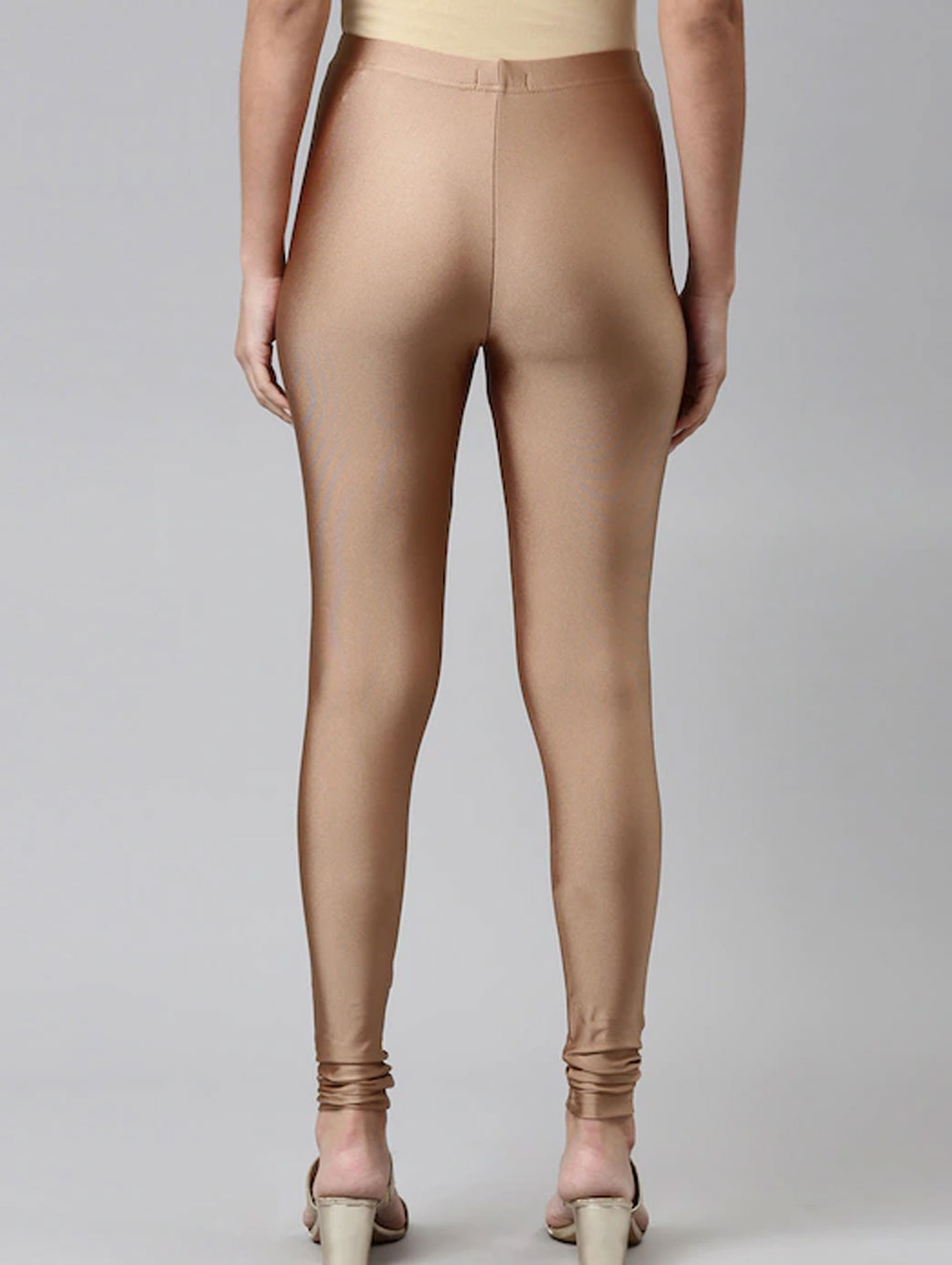 Women Gold Coloured Solid Shimmer Churidar Length Leggings