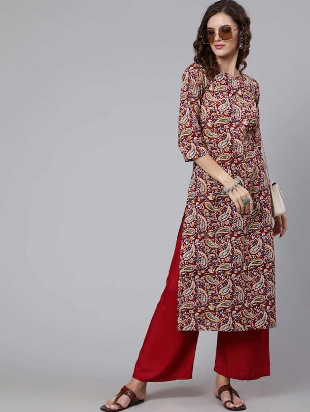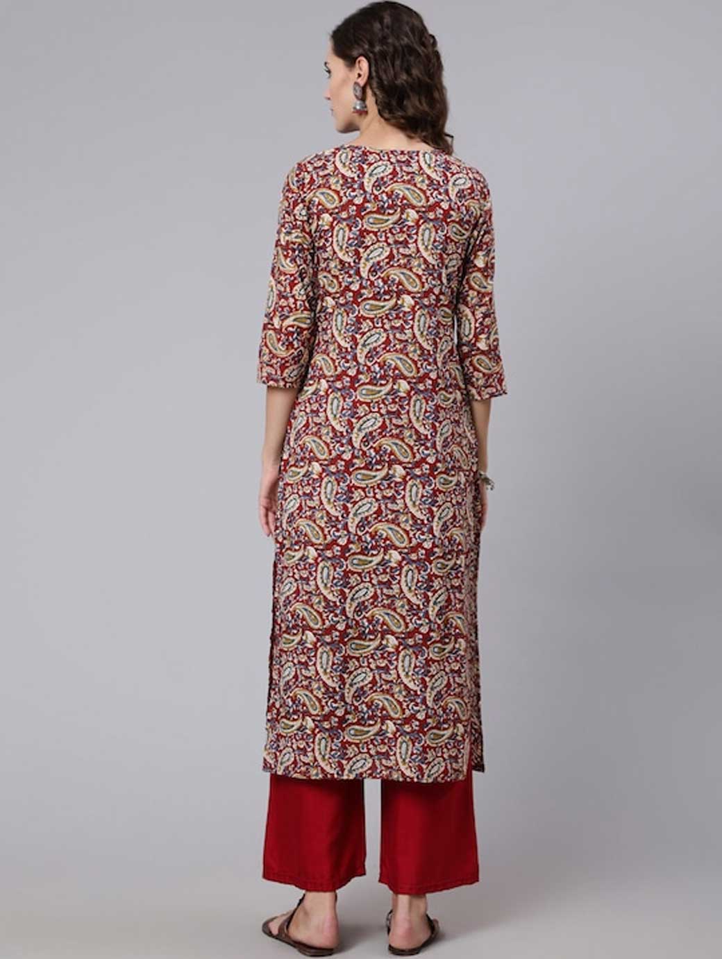 Women Maroon And Blue Paisley Printed Cotton Kurta