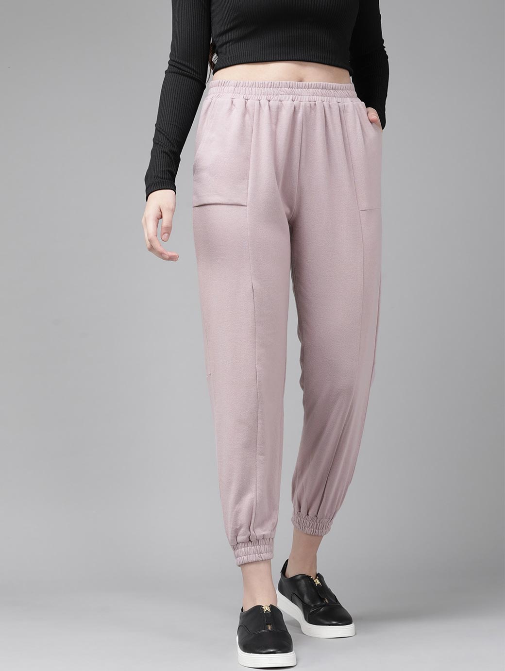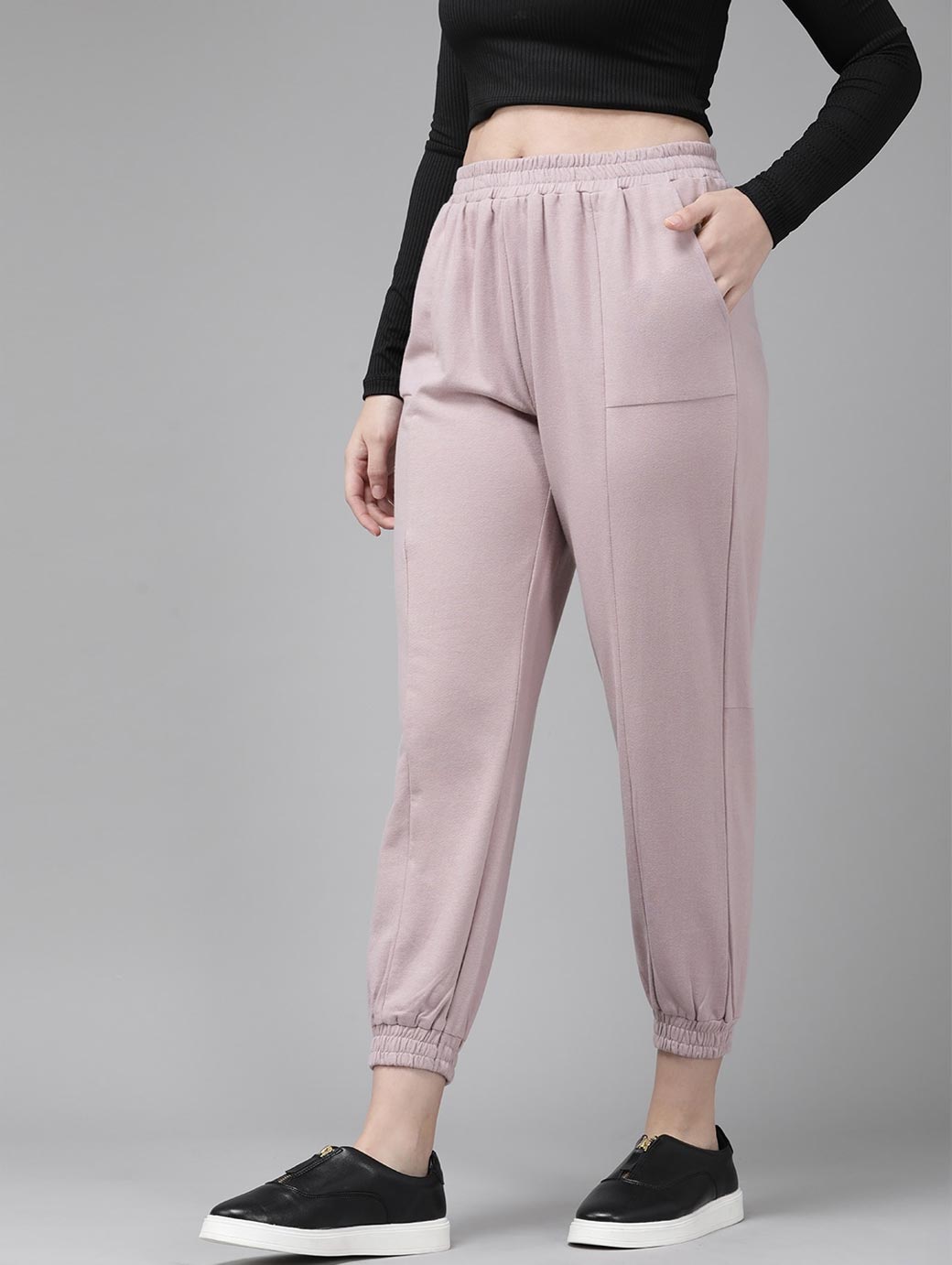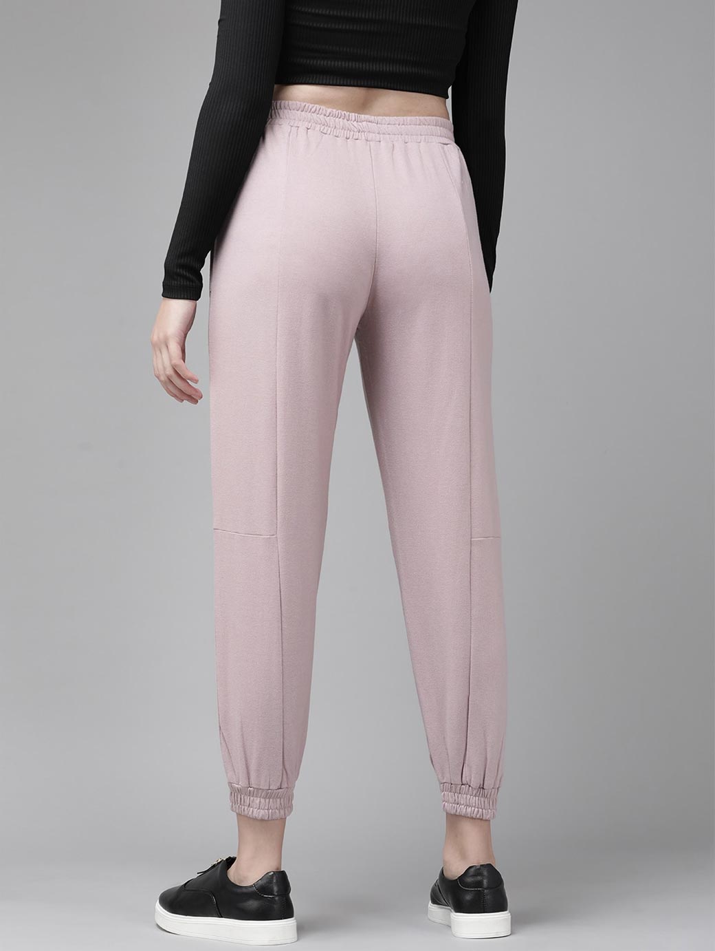 Rose  solid cropped joggers, has an elasticated waistband with drawstring closure and two pockets